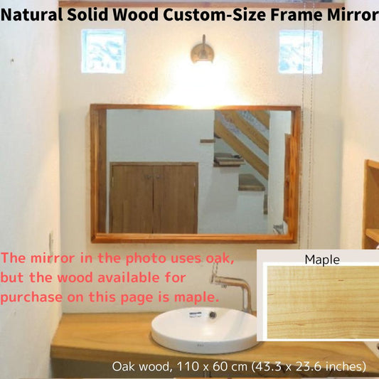 Custom-sized mirrors with a maple frame, known for its elegant wood grain.