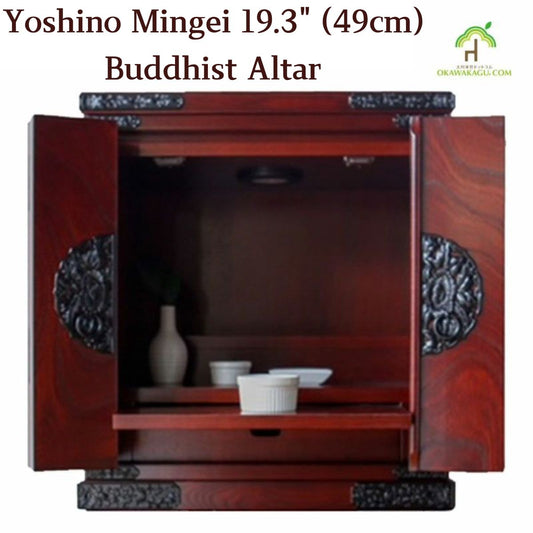 【Yoshino Mingei Keyaki Wood】Elegant Compact Buddhist Altar - 19.3" (49cm) Wide
