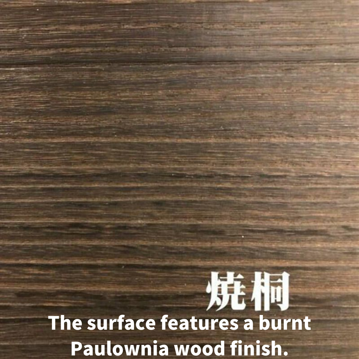 The exterior is completed with a traditional burnt Paulownia wood finish and coated with a low-gloss lacquer for an elegant, timeless appearance.
