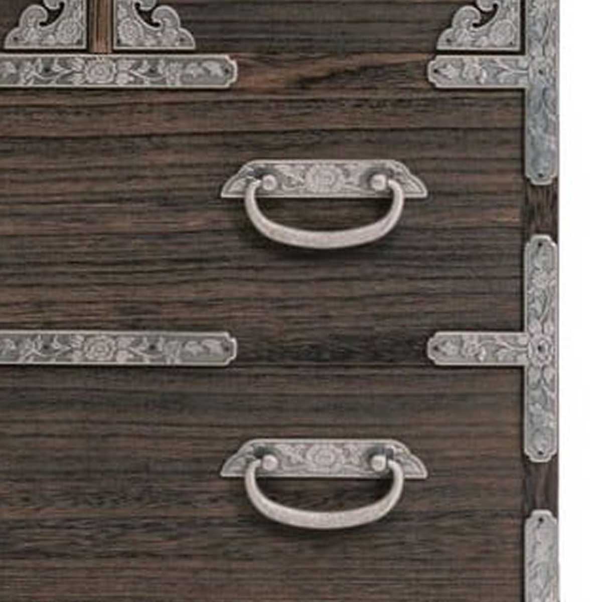 This paulownia chest combines traditional Japanese craftsmanship with modern design, featuring a five-layer top panel, 8mm thick reinforced panels, lightweight paulownia wood with excellent moisture control, intricate peony motif metal fittings, a burnt paulownia finish, and handcrafted details by skilled artisans, making it a durable and elegant made-to-order piece that offers natural insect and moisture protection, as well as high heat resistance to safeguard your stored items.