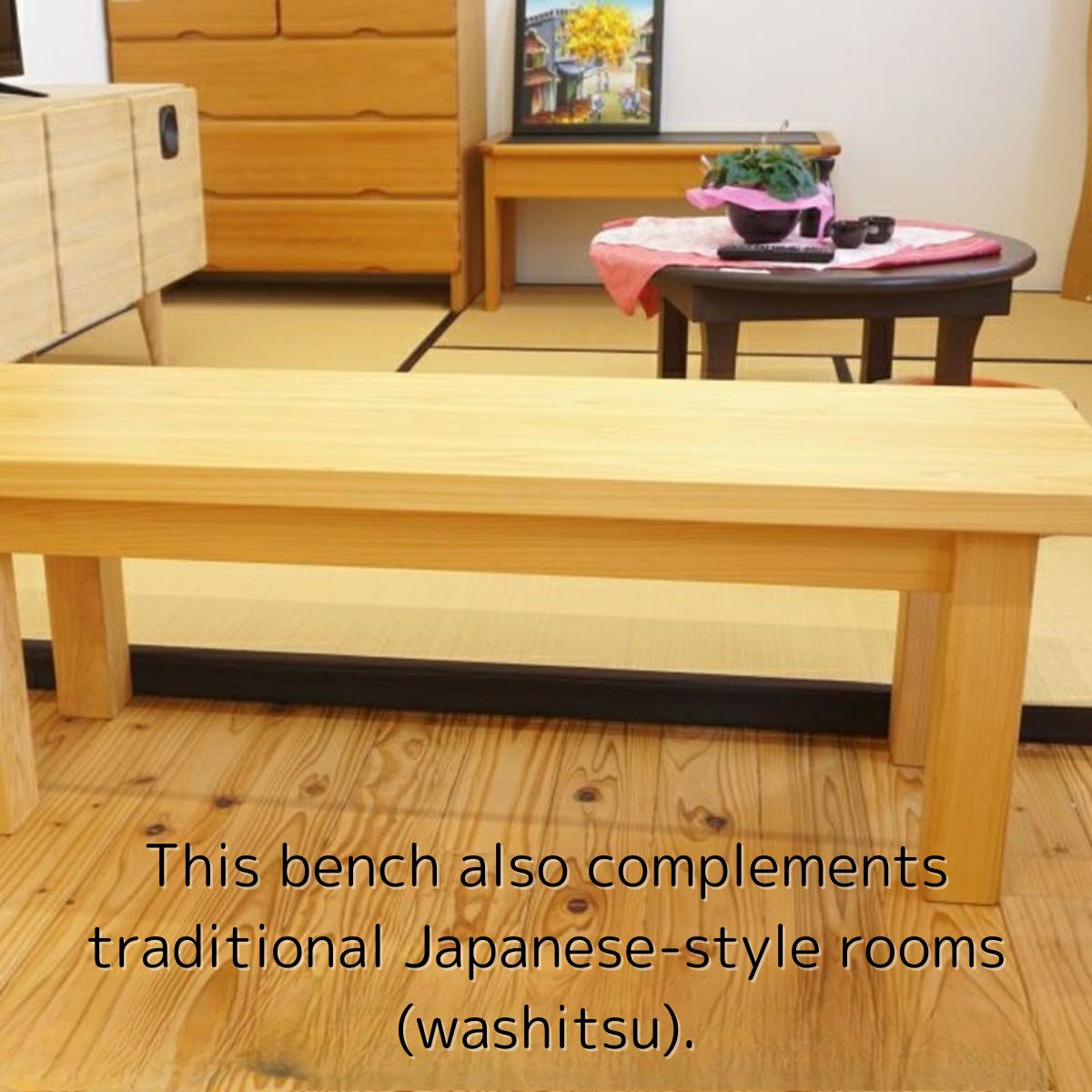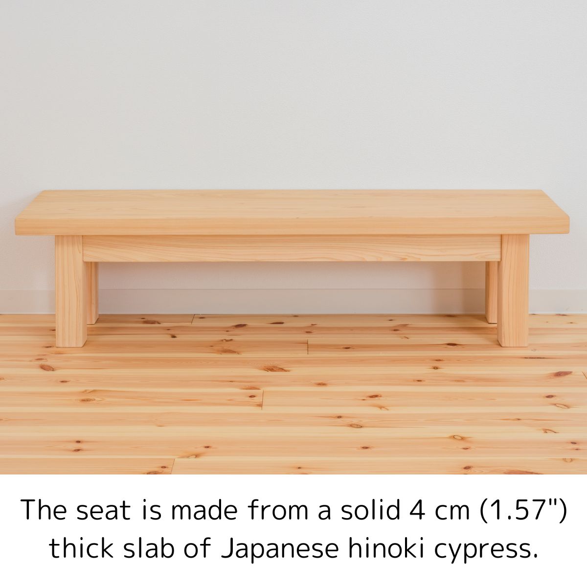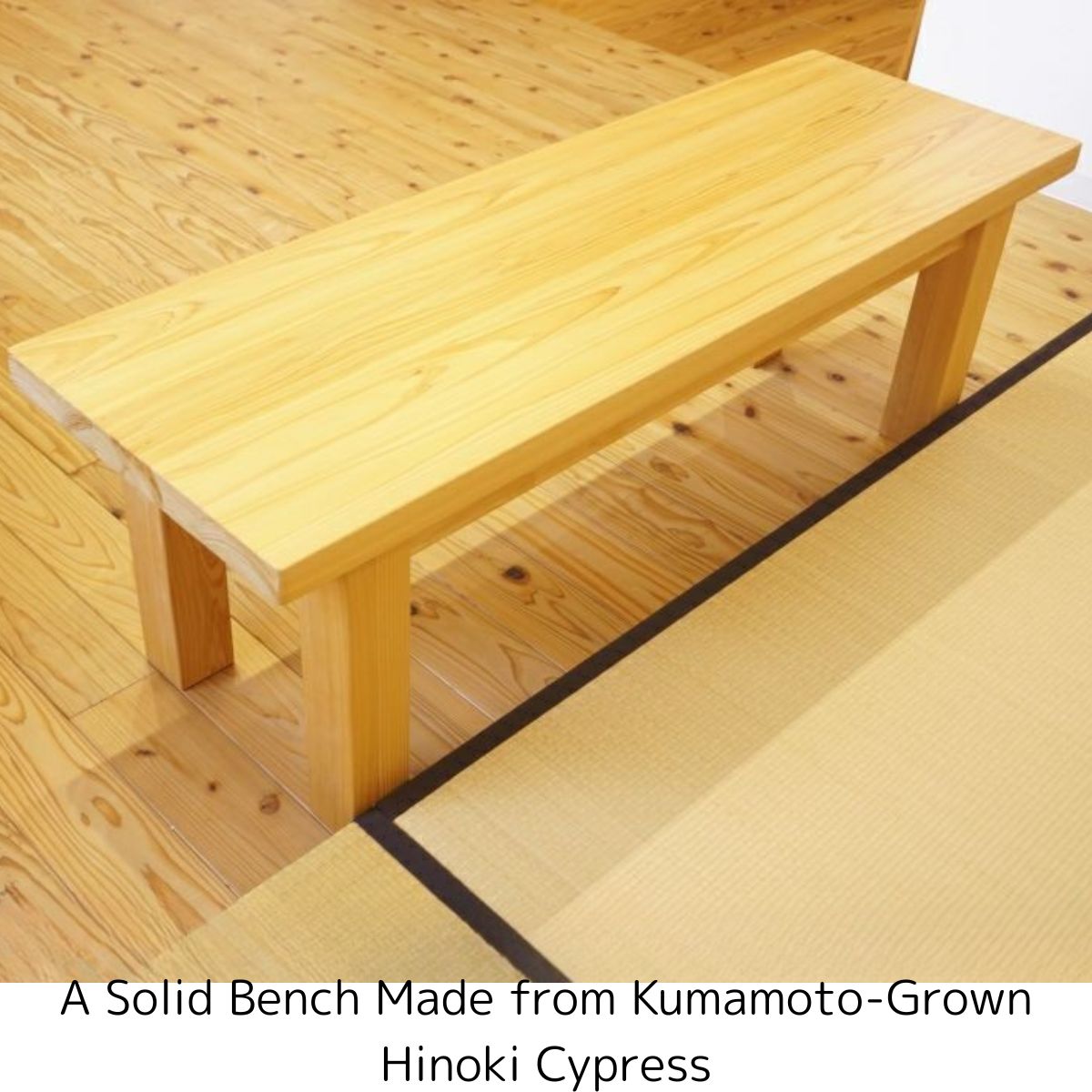 This handcrafted dining bench is made from solid Japanese hinoki cypress, sourced from Kumamoto Prefecture. Its silky-smooth surface and elegant grain reflect the quiet beauty of natural wood, making it perfect for modern homes or traditional interiors alike.