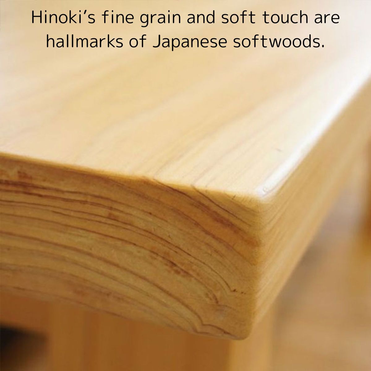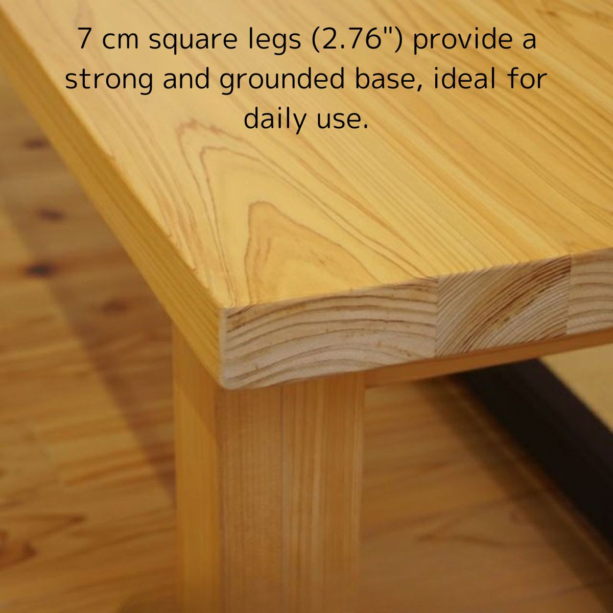 - Solid Craftsmanship: Built with 4cm thick solid hinoki and 7cm square legs for a sturdy, high-end presence. Gently rounded edges add a soft, welcoming feel.