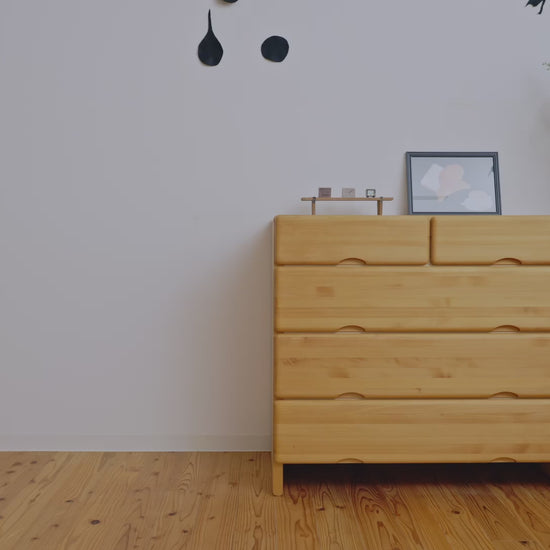 This chest of drawers features rounded corners for enhanced safety and utilizes materials meeting Japan's highest formaldehyde standards alongside natural finishes, bringing peace of mind to bedrooms where you spend extended periods.