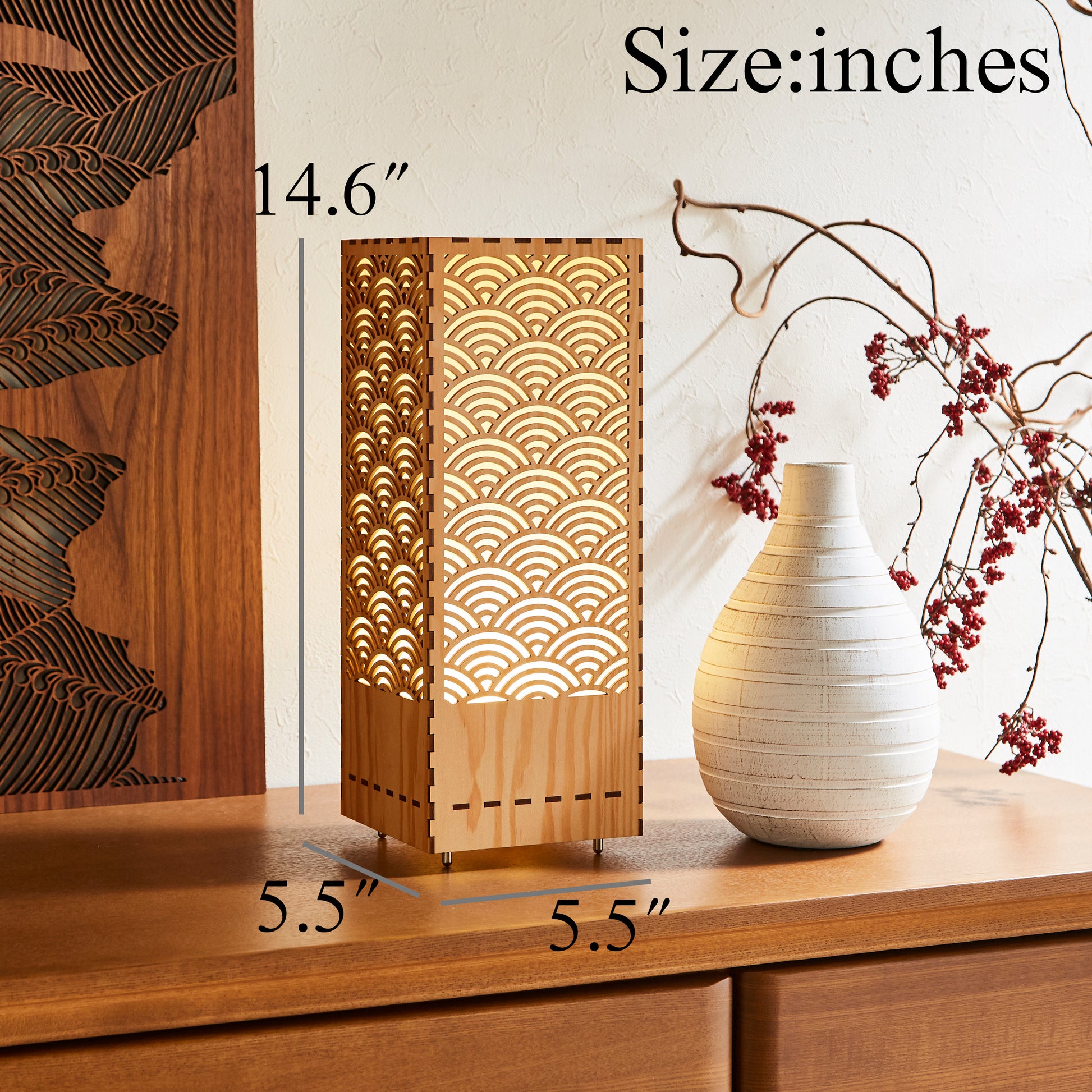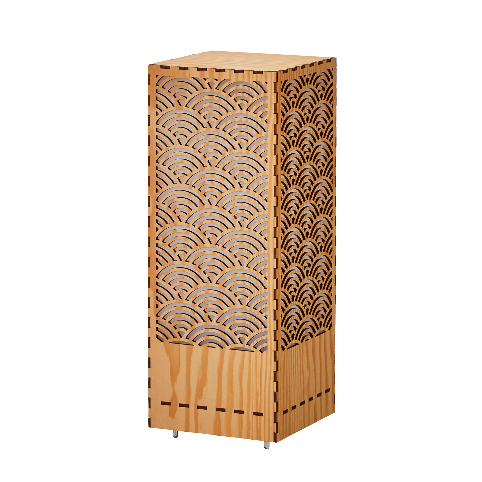 This room lamp features the traditional Japanese “Seigaiha” (blue ocean waves) pattern, meticulously crafted with precision laser-cutting technology. The delicate geometric designs on its four panels create a beautiful interplay of light and shadow, bringing an elegant and tranquil atmosphere to your space.