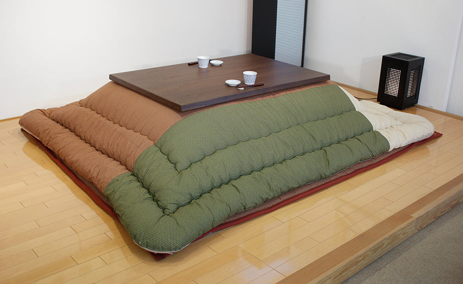 A kotatsu is a traditional Japanese heating table with a small heater installed underneath and a special blanket draped over the top. When you place your legs under the blanket, the heater warms the space, keeping you cozy even during the coldest winter days. In warmer seasons, you can remove the blanket and use it as a regular table.