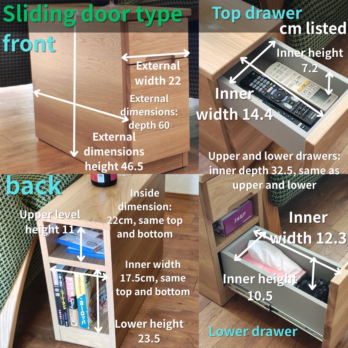 Rear Open Shelf – Upper (inside): W 17.5 × D 22 × H 11 cm (W 6.9" × D 8.7" × H 4.3")
