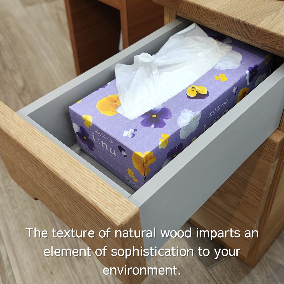 For everyday care, use a dry cloth or a well-wrung damp cloth to remove dust or dirt. Water drops may cause ring stains, so please take care. To prevent wood from drying and cracking, apply furniture oil periodically to maintain its condition.