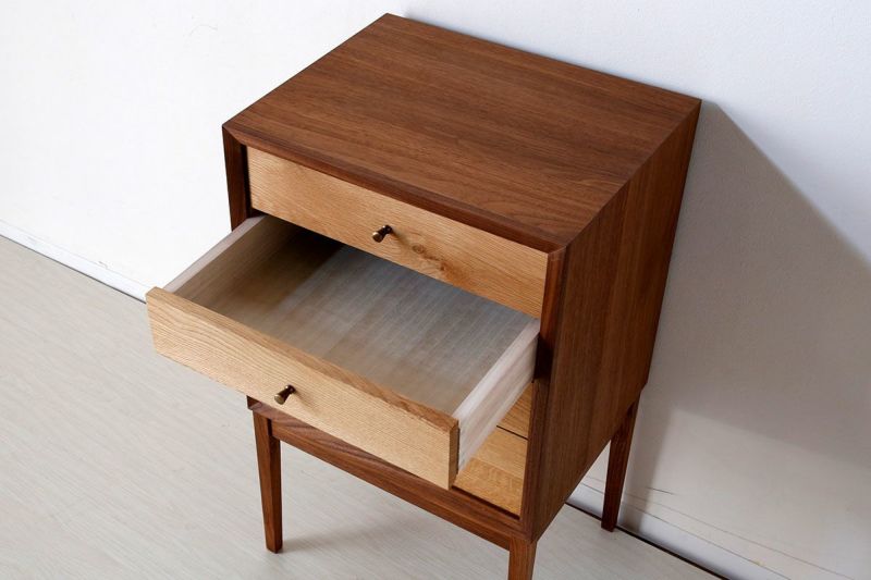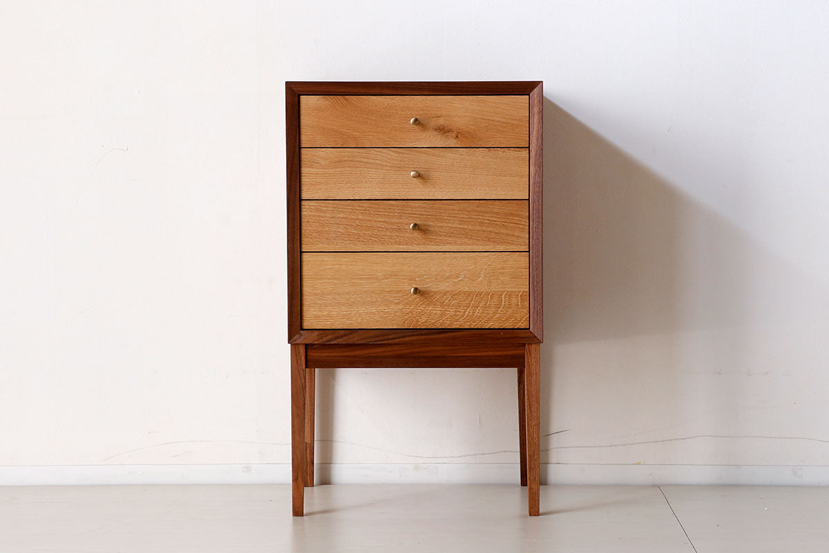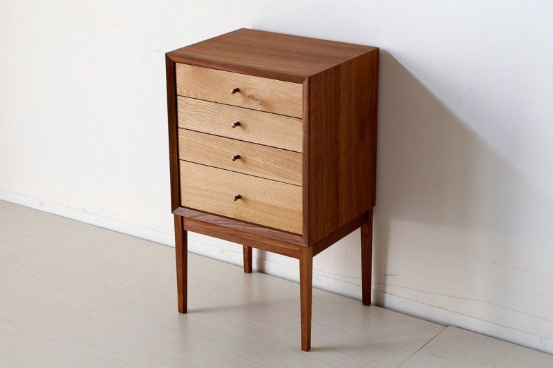Stylish chest of drawers made of popular woods joined using traditional Japanese techniques.