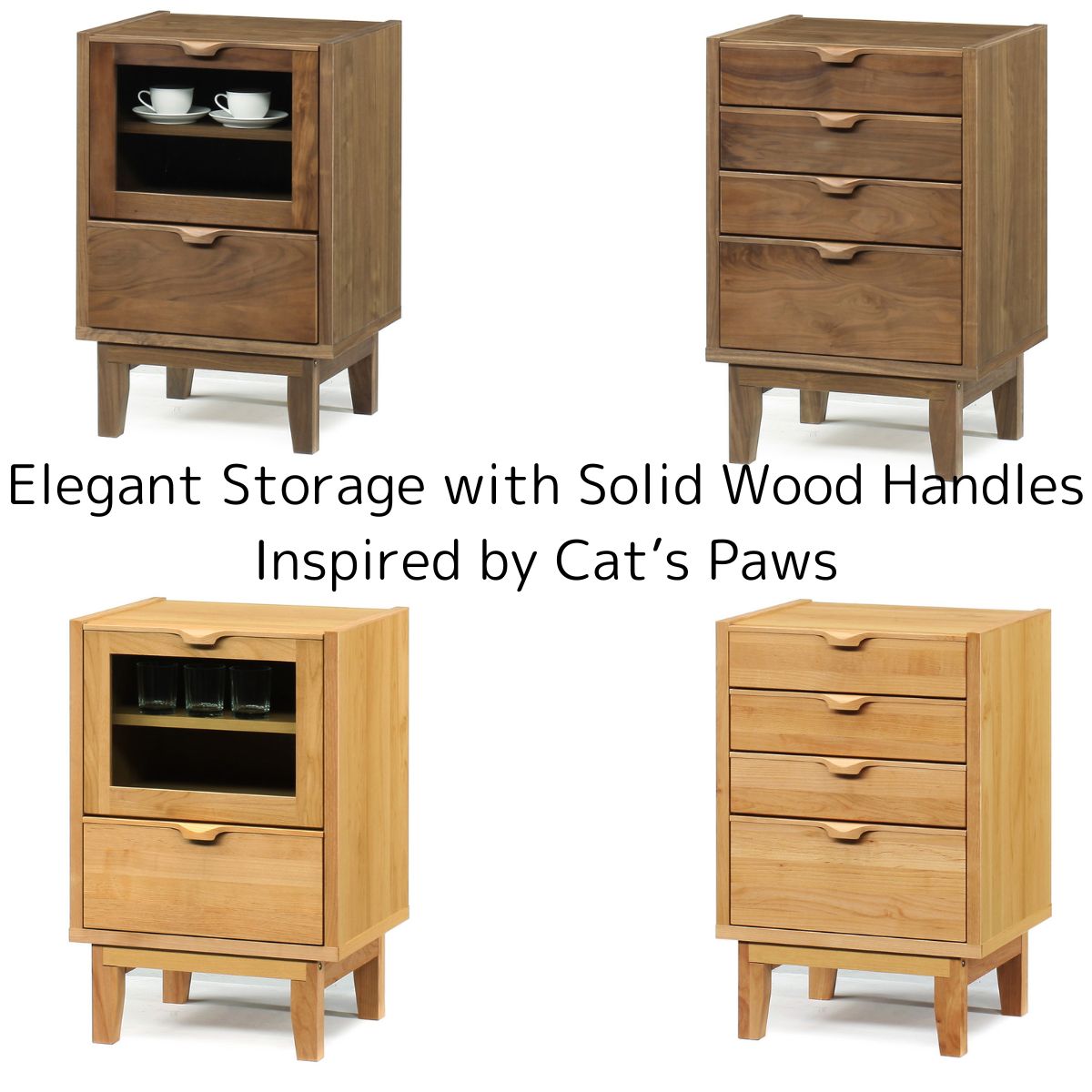 Available in two styles — a drawer chest and a cabinet with downward-opening doors — this piece unites practicality with a refined handle design. Soft-drop doors and full-extension rails provide smooth, effortless use, while raised legs make cleaning easy. Its elegant silhouette blends naturally with living rooms, bedrooms, workspaces, and entryways. Crafted by Japanese artisans, it balances warmth and modern function, offering timeless storage made to be cherished for generations.