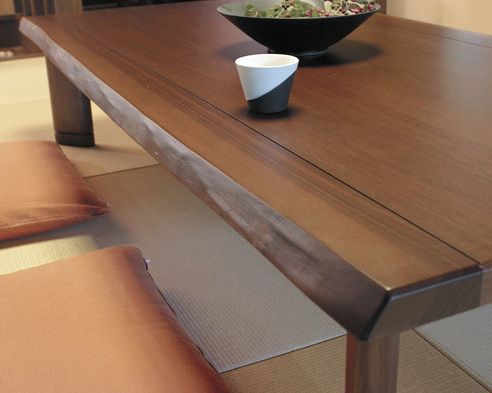 A luxurious furniture-style kotatsu, which utilizes the natural edge of walnut for its top border.